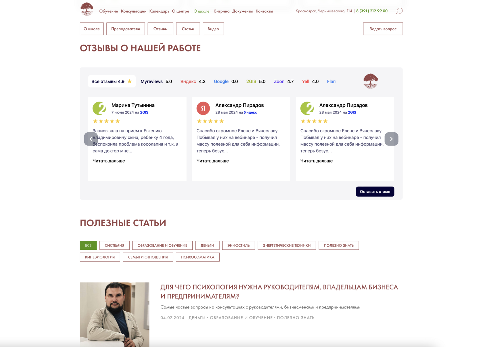 Сотрудничаем с клиентом более 2-х лет (периодически создаем для Психологического центра посадочные страницы) на предстоящие курсы.